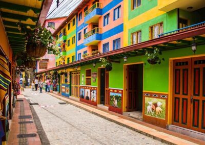 - La Candelaria – historyczna dzielnica Bogoty, która stanowi prawdziwe serce kolonialnego miasta. To właśnie tutaj w 1538 roku hiszpański konkwistador Gonzalo Jiménez de Quesada założył miasto. Spacerując wąskimi, brukowanymi uliczkami, podziwiać będziemy kolorowe fasady domów z charakterystycznymi drewnianymi balkonami, klimatyczne place i bogate murale.